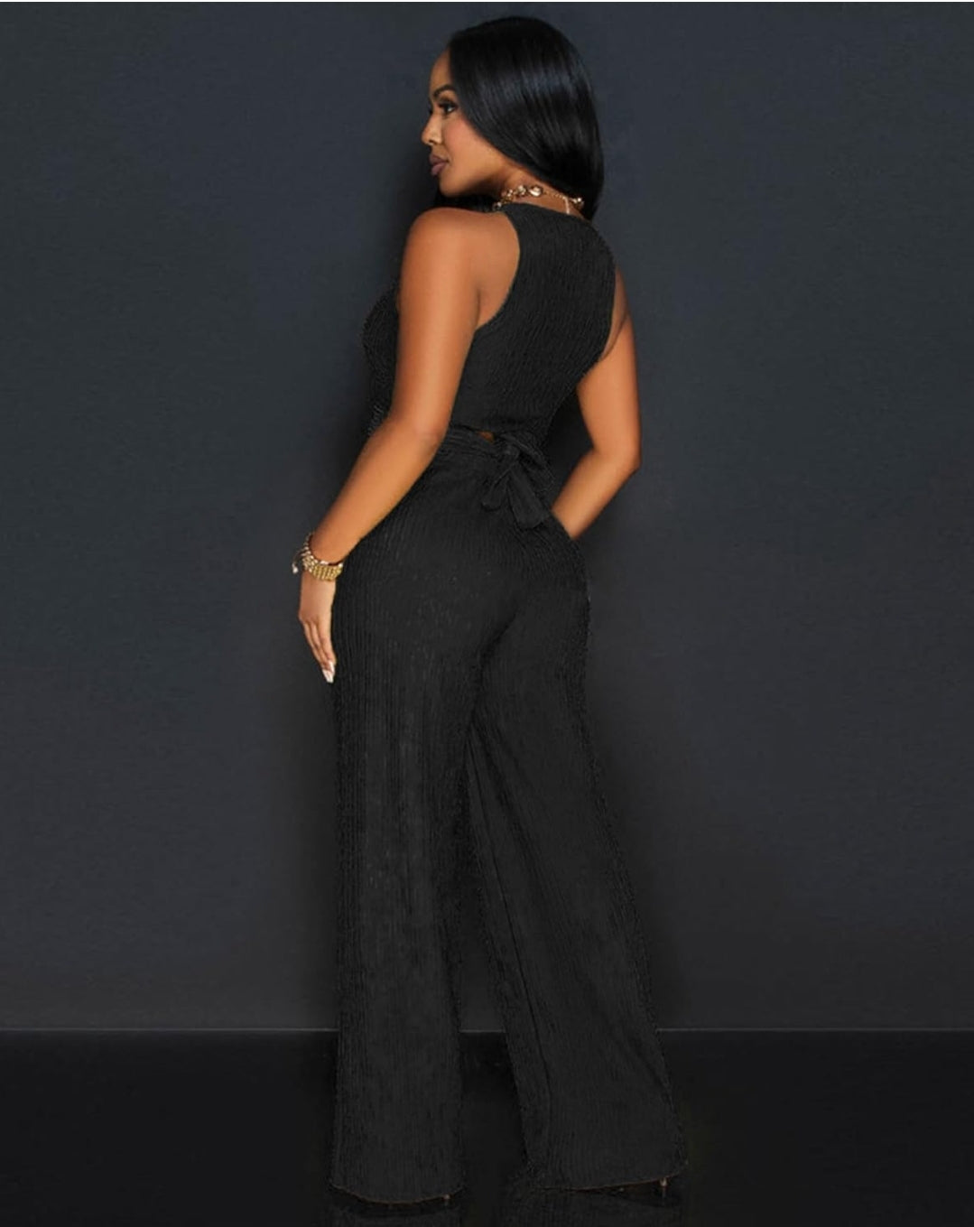 Summer Outfits for Women Ribbed Knit Palazzo Wide Leg Pants 2 Pieces Set
